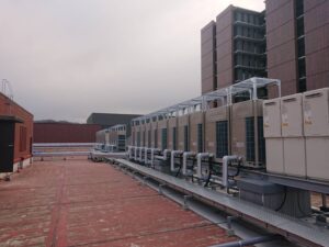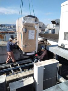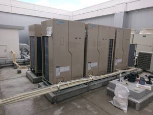 生駒エンジニアサービスでは、空調取り付けに伴う電気工事、室内工事もご依頼いただけます。屋上への室外機の設置や配管などもお任せいただけます。
