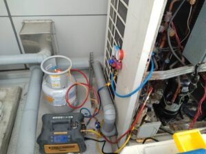業務用室外機の細部までメンテナンスを行います。